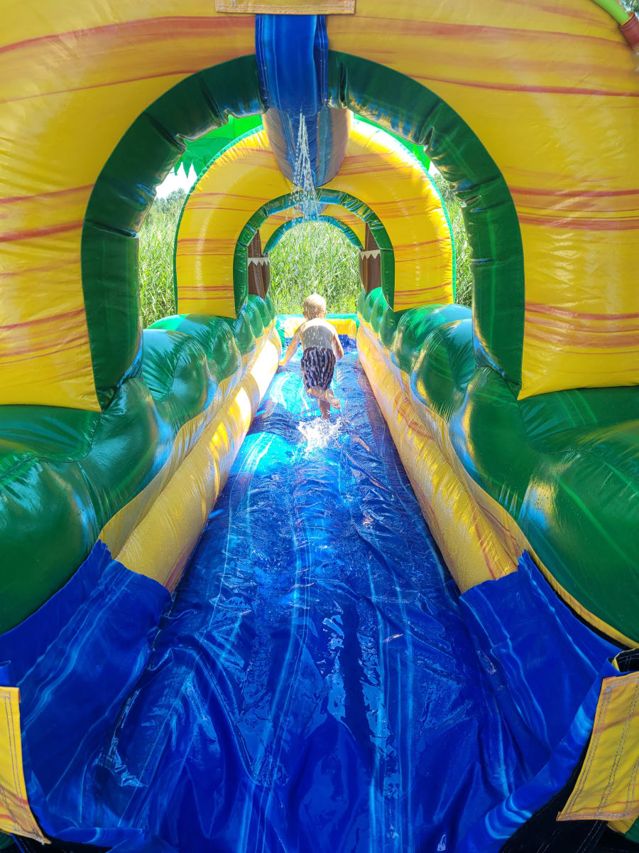 Haywire is bringing the best to your backyard! Our 19ft waterslide with 30 ft slip n slide attachment rental will make your party/event unforgettable!
