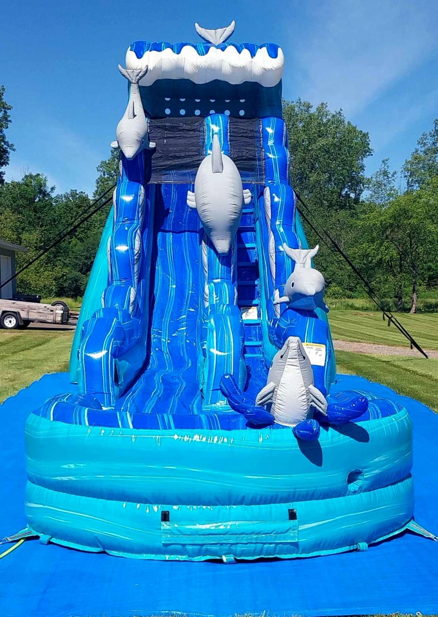 Perfect for kids, teens and adults! Our Dolphin Daze Waterslide is just what's needed for any great party to add on that WOW factor! Our inflatables are cleaned and disinfected after every use. As you climb the stairs all the way to the top, plunging down the slide under the sprinkler system, and making a splash into the pool at the bottom, you are guaranteed to make memories that will last a lifetime with Haywire Event Rental!